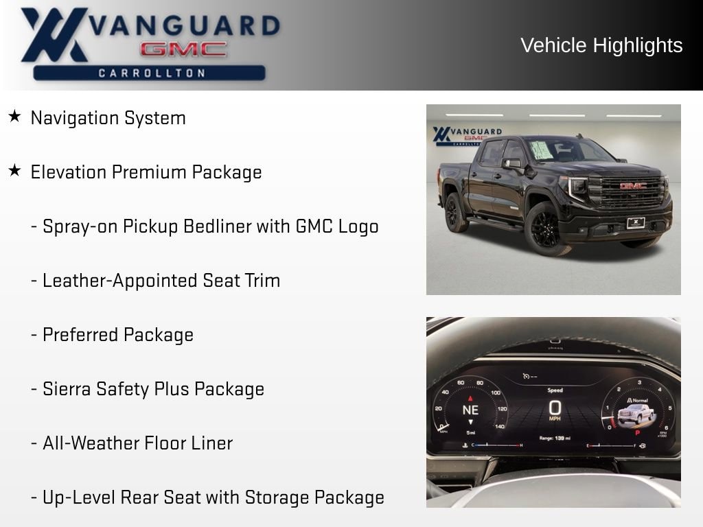 Designed with your needs in mind, the Sierra 1500 Elevation also includes the Elevation Premium Package, High Capacity Suspension Package, Preferred Package, Sierra Safety Plus Package, Trailering Package, and Up-Level Rear Seat with Storage Package, ensuring you have all the tools and amenities to tackle any task with confidence.
