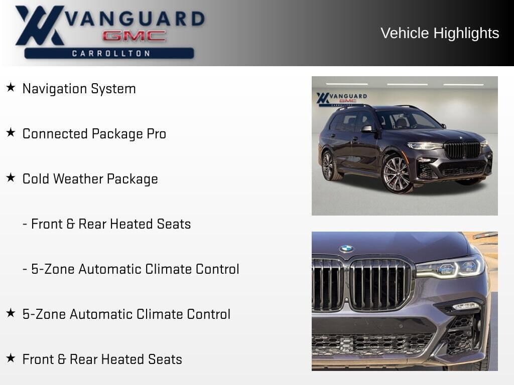 5-Zone Automatic Climate Control, Cold Weather Package, Connected Package Pro, Front & Rear Heated Seats, Navigation System. Clean CARFAX. CARFAX One-Owner. Priced below KBB Fair Purchase Price!Arctic Gray Metallic 2022 BMW X7 M50i 4.4L V8 DOHC 32V AWD 8-Speed Automatic Sport 15/21 City/Highway MPGPricing does not include taxes, state fees, dealer fees, or dealer added accessories.