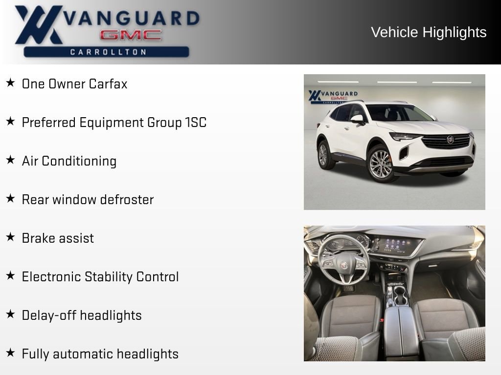 This one-owner Buick Envision Preferred is a true standout in the crowded SUV market. With its exceptional features, refined style, and impressive performance, it's the perfect choice for the discerning buyer who demands the best. Visit our showroom today to experience the Envision Preferred for yourself and discover why it's the SUV you've been searching for.