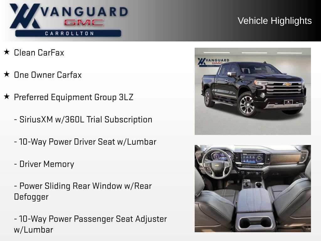 Discover the ultimate in power, technology, and luxury with this stunning 2026 Chevrolet Silverado 1500 High Country 3LZ. This exceptional vehicle is more than just a truck it's a masterpiece of engineering and design, built to elevate your driving experience to new heights.Boasting a meticulously maintained one-owner history and a clean Carfax report, this Silverado is a true gem. Equipped with a powerful 6.2L EcoTec3 V8 engine, this truck delivers an impressive 420 horsepower and 460 lb-ft of torque, providing the ultimate blend of performance and efficiency. The 10-speed automatic transmission and 4-wheel drive system ensure seamless power delivery and exceptional off-road capability, making this Silverado the perfect companion for your next adventure. Clean Carfax One Owner Carfax 6.2L V8 EcoTec3 Engine Technology Package Sunroof, Power Z71 Off-Road Package Active Exhaust, Dual, Sport-Mode Enabled High Capacity Suspension Package Preferred Equipment Group 3LZ Trailering Package Up-Level Rear Seat w/Storage PackageStepping inside, you'll be greeted by a luxurious cabin that exudes sophistication and attention to detail. The High Country trim level pampers you with genuine wood accents, a premium Bose audio system, and a suite of advanced technology features, including a 12.3-inch reconfigurable digital display, a 15-inch head-up display, and a Rear Camera Mirror. The heated and ventilated front seats, along with the heated rear seats, ensure maximum comfort no matter the weather.The Silverado's impressive capabilities extend beyond the cabin. With a towing capacity of up to 13,000 pounds and a payload capacity of 2,280 pounds, this truck is ready to handle your toughest jobs with ease. The Chevytec spray-on bedliner, chrome recovery hooks, and integrated trailer brake controller further enhance its utility, making it the ultimate workhorse.Safety is also a top priority in this Silverado, with features like Forward Collision Alert, Automatic Emergency Braking, Lane Keep Assist, and a Rear Pedestrian Alert system ensuring you and your loved ones are protected on the road.Experience the pinnacle of power, technology, and luxury with this exceptional 2026 Chevrolet Silverado 1500 High Country 3LZ. Visit our showroom today and let us demonstrate how this remarkable truck can transform your driving experience.