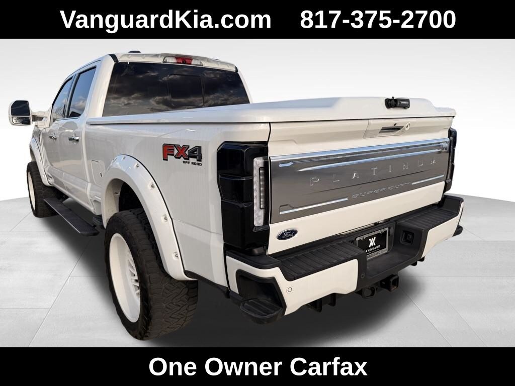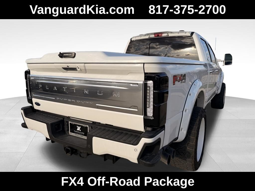 The exterior of this F-250SD Platinum shines in a stunning White Metallic Tri-Coat finish, complemented by the bold and rugged FX4 Off-Road Package. The custom lift and wheels add an aggressive, yet refined, aesthetic that is sure to turn heads wherever you go.
