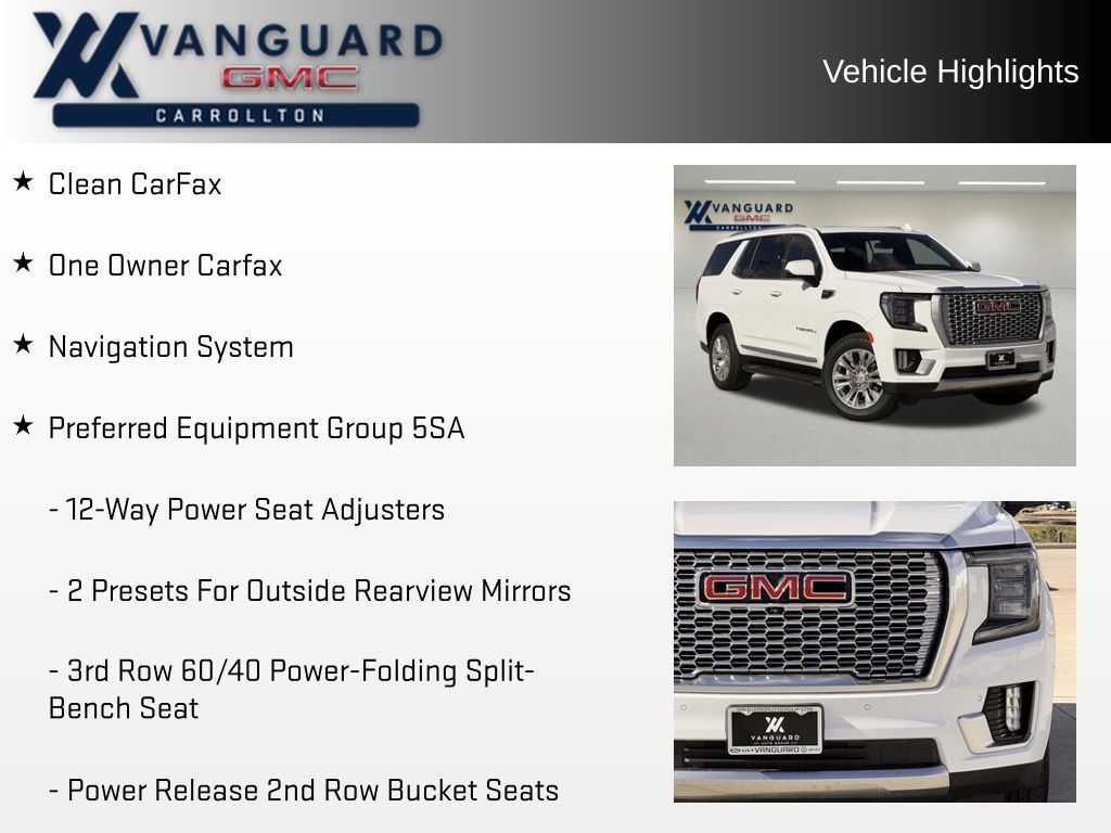 Boasting a clean CARFAX history and single-owner status, this Yukon Denali is a testament to quality and care. Key features include: