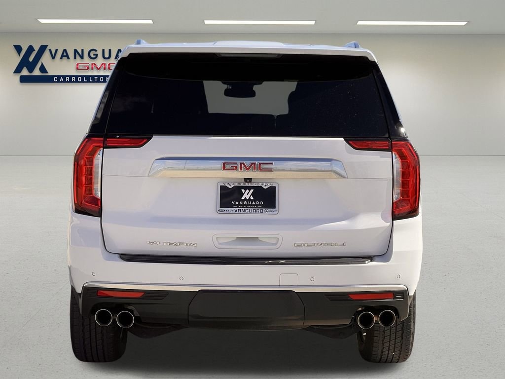 Step inside and be captivated by the Yukon Denali's stunning interior. The 15-inch diagonal multi-color head-up display, Bose 14-speaker surround sound system, and wireless charging seamlessly blend cutting-edge technology with refined luxury. Enjoy the convenience of hands-free power programmable rear liftgate, adaptive cruise control, and the safety of enhanced automatic emergency braking.