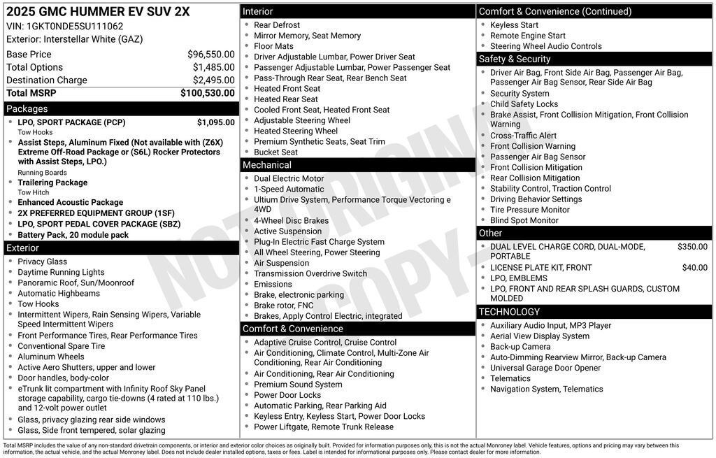 2025 GMC Hummer EV SUV 2XClean CARFAX. This vehicle comes with the following features and options :Contingent upon dealer acceptance of terms. Terms may vary. Certification and additional reconditioning fees may apply.