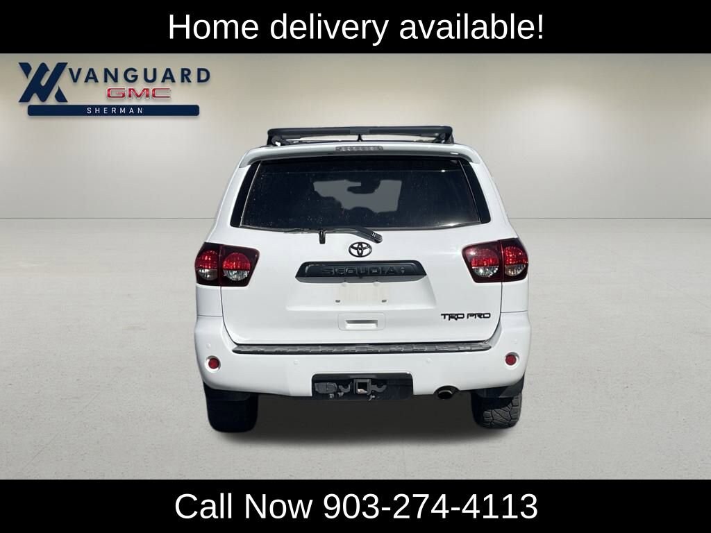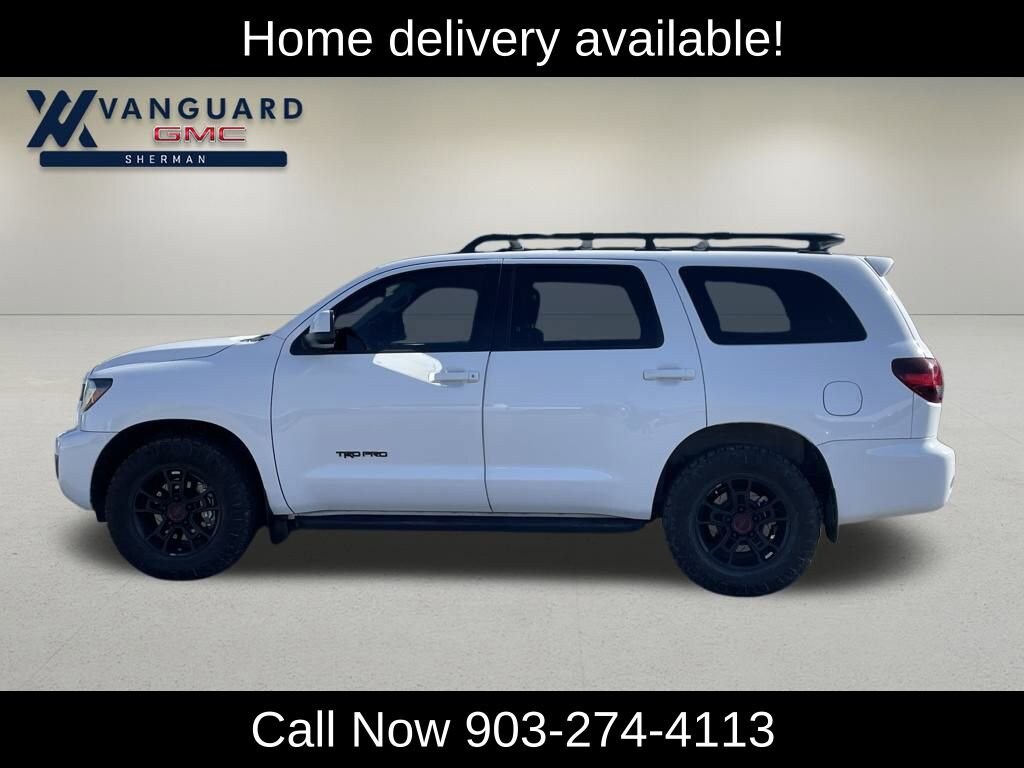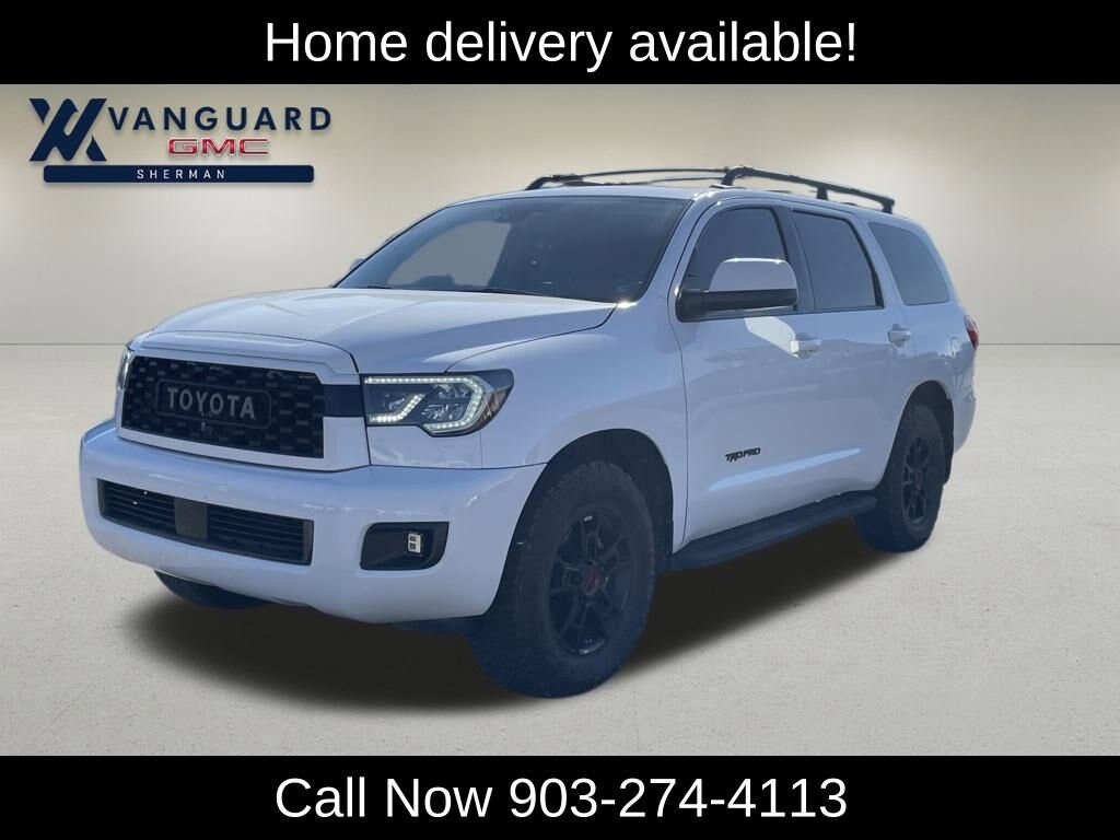 Clean CARFAX. CARFAX One-Owner. This vehicle comes with the following features and options : TRD Pro Package (Auto-Dimming Rear-View Mirror, Compass, Door Scuff Plate, and HomeLink Universal Transceiver), 6-Speed Automatic, 4WD, ABS brakes, Active Cruise Control, Auto High-beam Headlights, Electronic Stability Control, Front dual zone A/C, Front Heated Bucket Seats, Heated door mirrors, Heated front seats, Illuminated entry, Leather Seat Trim, Low tire pressure warning, Power moonroof, Remote keyless entry, Traction control, Wheels: 18 Black BBS Forged Aluminum Alloy, 15 Speakers, 3rd row seats: split-bench, 4-Wheel Disc Brakes, 4.30 Axle Ratio, Air Conditioning, Alloy wheels, AM/FM radio: SiriusXM, Apple CarPlay/Android Auto, Auto-dimming Rear-View mirror, Automatic temperature control, Brake assist, Bumpers: body-color, Delay-off headlights, Driver door bin, Driver vanity mirror, Dual front impact airbags, Dual front side impact airbags, Emergency communication system: Safety Connect with 1-year trial, Exterior Parking Camera Rear, Four wheel independent suspension, Front anti-roll bar, Front Bucket Seats, Front Center Armrest, Front fog lights, Front reading lights, Fully automatic headlights, Garage door transmitter: HomeLink, Headlight cleaning, Knee airbag, Leather Shift Knob, Leather steering wheel, Navigation system: Dynamic Navigation with up to 3-year trial, Occupant sensing airbag, Outside temperature display, Overhead airbag, Overhead console, Panic alarm, Passenger door bin, Passenger vanity mirror, Power door mirrors, Power driver seat, Power steering, Power windows, Radio: Premium Audio w/Nav/JBL/Clari-Fi, Rear air conditioning, Rear anti-roll bar, Rear reading lights, Rear seat center armrest, Rear window defroster, Rear window wiper, Reclining 3rd row seat, Roof rack, Security system, Speed control, Speed-sensing steering, Split folding rear seat, Spoiler, Steering wheel mounted audio controls, Tachometer, Telescoping steering wheel, Tilt steering wheel, Trip computer, Variably intermittent wipers, and Voltmeter. 6-Speed Automatic, 4WD, ABS brakes, Active Cruise Control, Auto High-beam Headlights, Auto-Dimming Rear-View Mirror, Compass, Door Scuff Plate, Electronic Stability Control, Front dual zone A/C, Front Heated Bucket Seats, Heated door mirrors, Heated front seats, HomeLink Universal Transceiver, Illuminated entry, Leather Seat Trim, Low tire pressure warning, Power moonroof, Remote keyless entry, Traction control, TRD Pro Package, Wheels: 18 Black BBS Forged Aluminum Alloy.